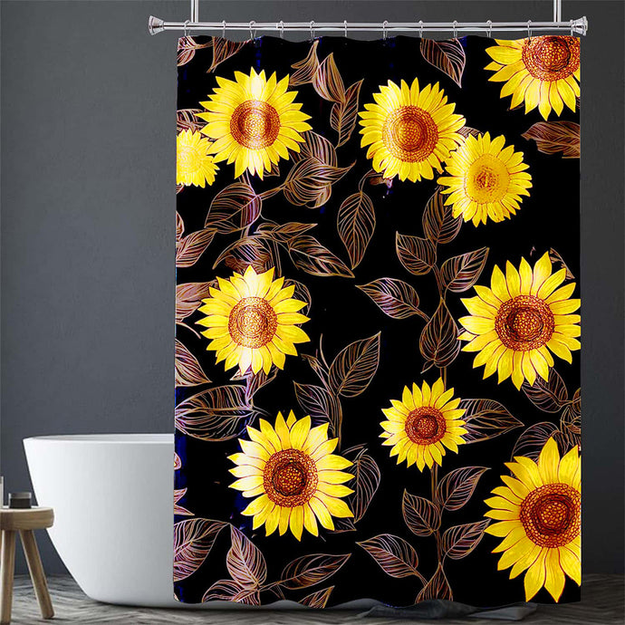 Sunflower Boho Shower Curtain | Black & Yellow Cute Floral Bathroom Decor