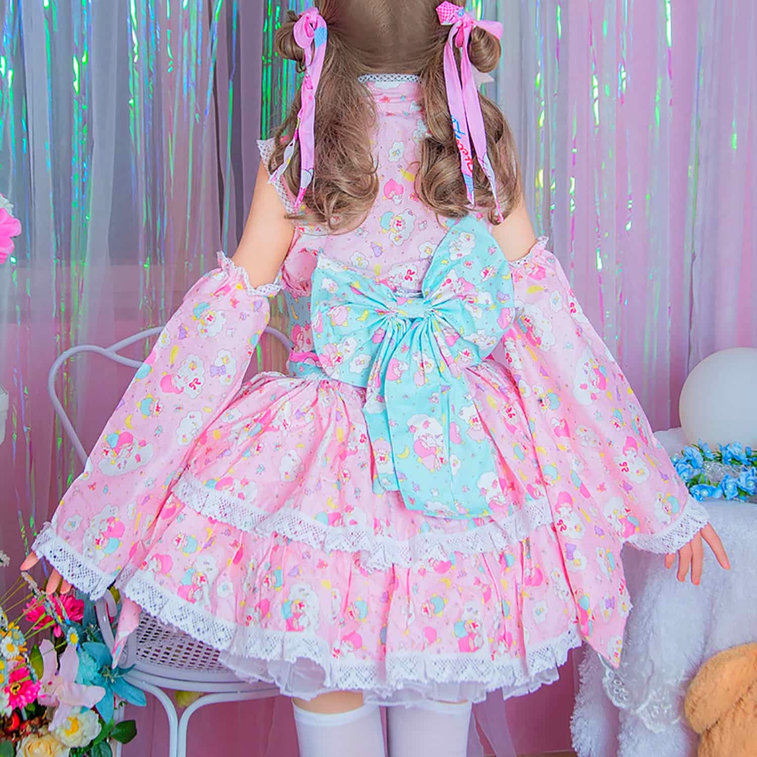 💖 LITTLE TWIN STARS | Adorable repeating print of Little Twin Stars from the Japanese Sanrio anime. So cute and fancy in Harajuku style! Perfect costume for fancy parties, photo shoots, and everyday.